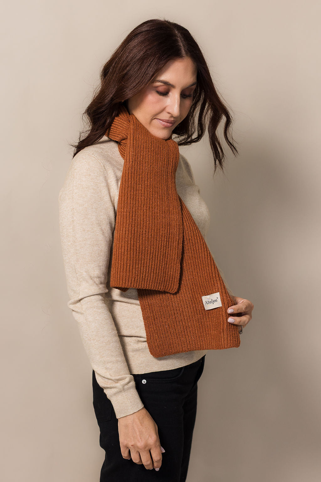 Ribbed knit Scarf Soft and luxurious to the touch Drapes easily, holds shape well and is a reliable everyday layering pieces *The dimensions have been carefully engineered to strike the right balance - not overly bulky, yet substantial enough to wrap generously, tuck into a jacket, or sit neatly under a coat without adding weight. |