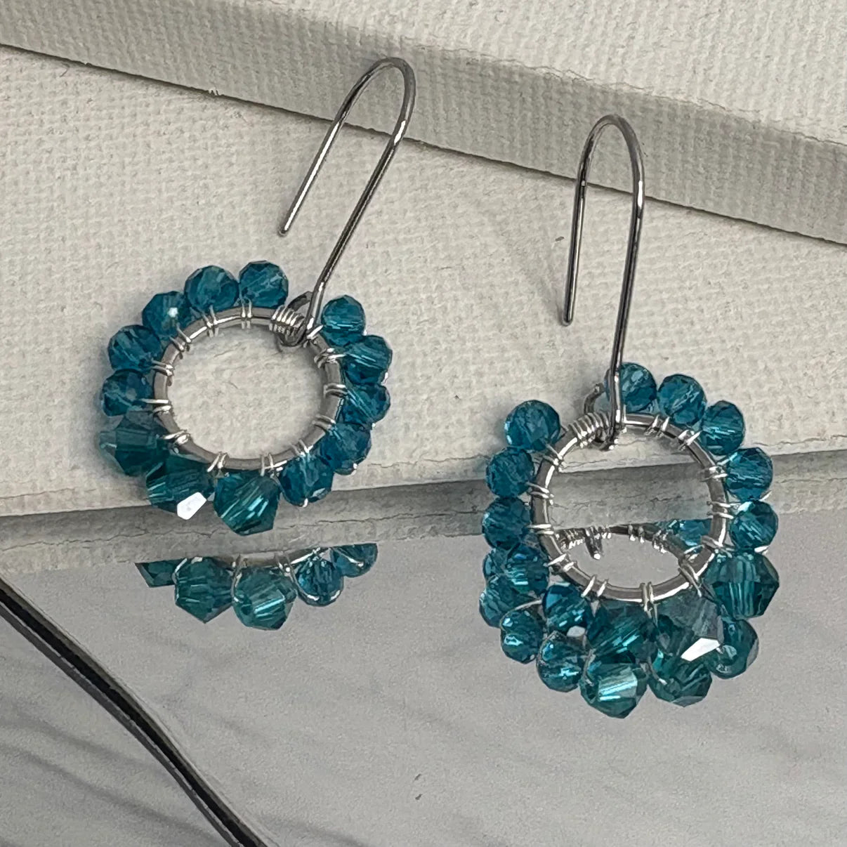 A small pop of colour that is dainty and perfect for those wanting something more discreet. Set on a 12mm gold plated OR rhodium plated (silver) hoop and finished off with either a gold plated or rhodium plated 20mm drop non-allergenic brass hook. The beading on these earrings is done locally in South Africa by talented female crafters. Proceeds support lives and livelihoods. Please note items are handmade and variation may occur.