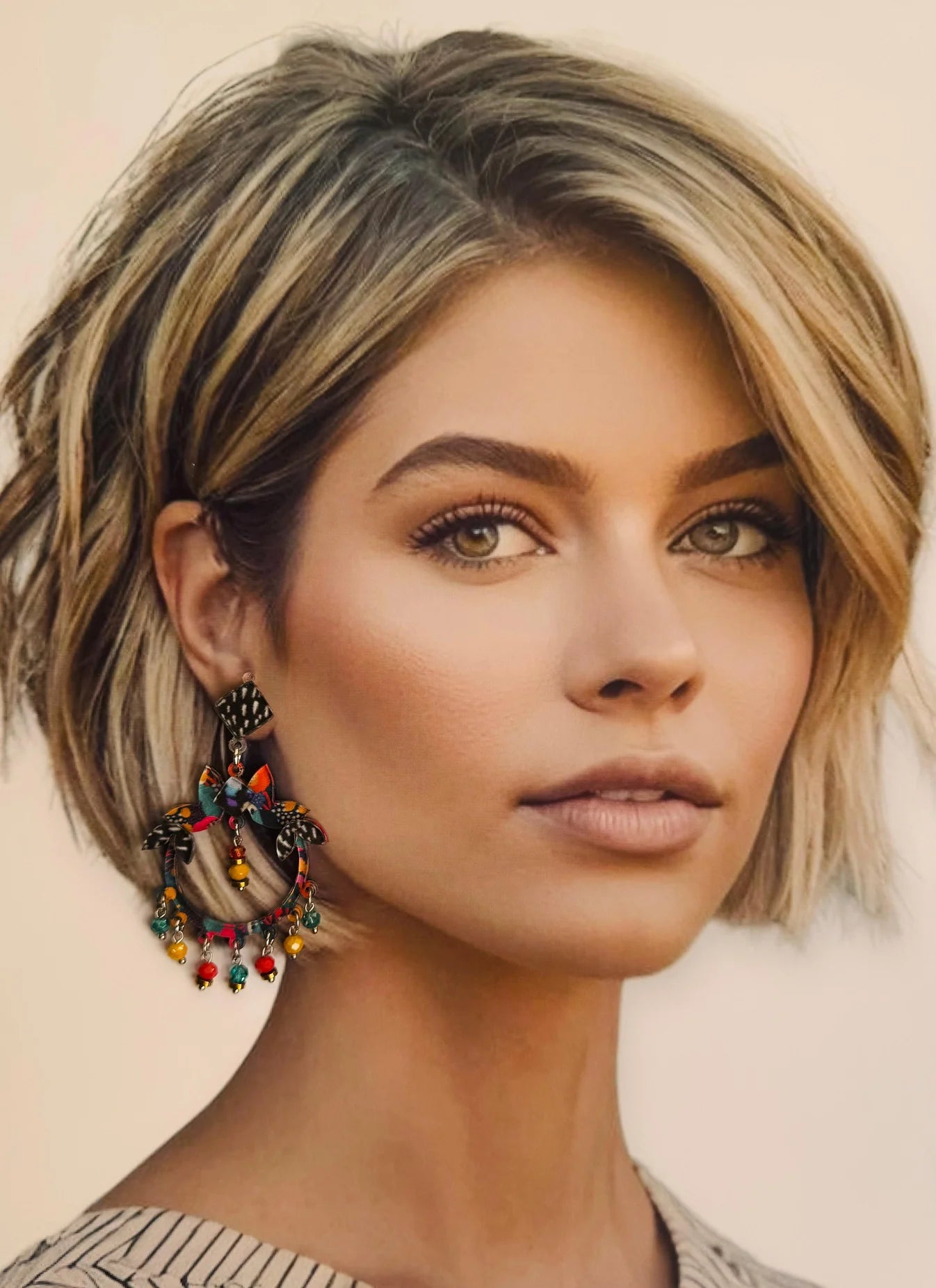 Bold, eclectic, and joyfully vibrant — | the NITA collection | features a dynamic mix of rich jewel tones and playful patterns. These earrings blend deep teal, deep orange, sunflower yellow, and hints of magenta with contrasting black and white prints for a visually striking effect. The result is a wearable piece of art that captures the spirit of bold individuality and artistic flair.