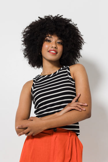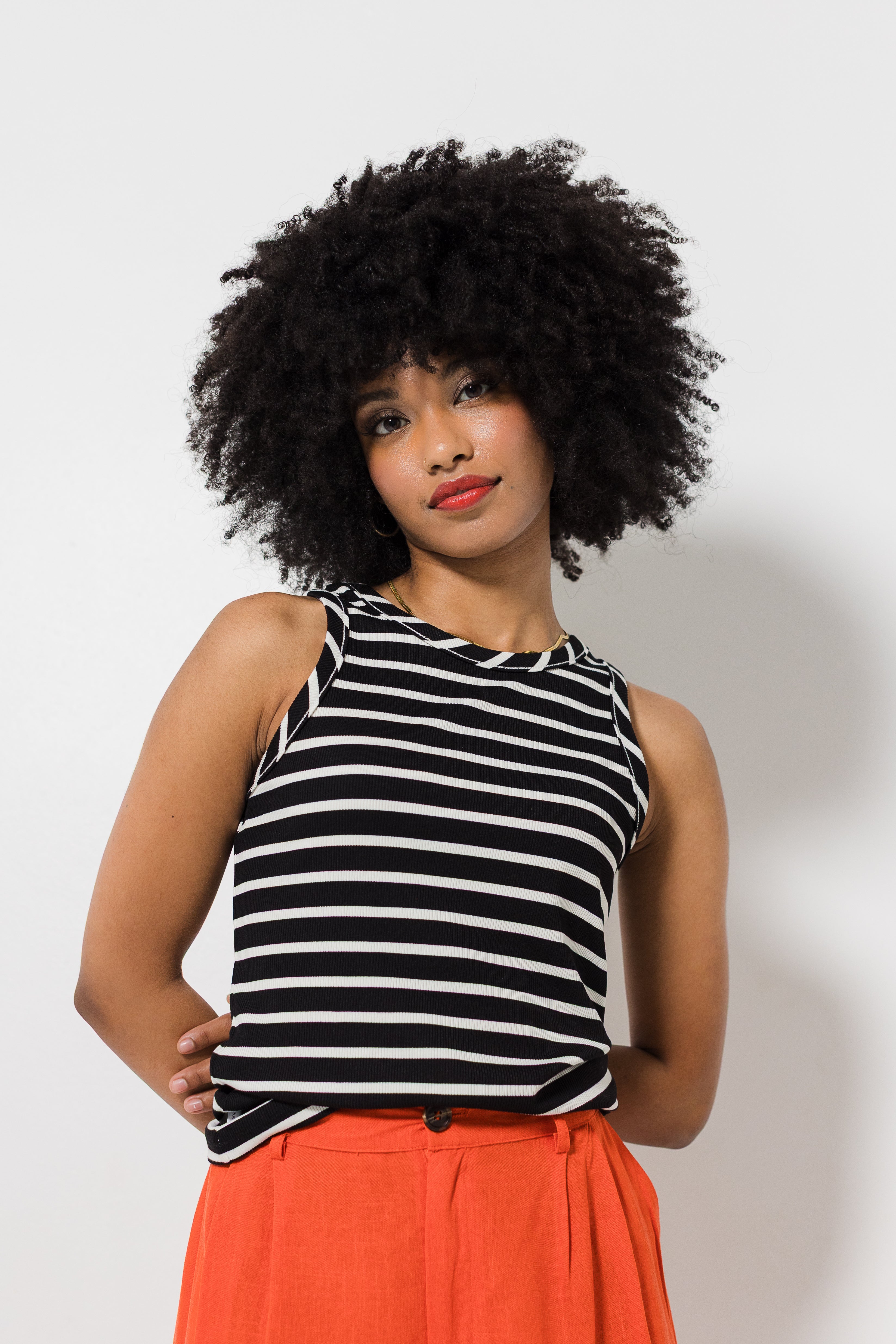 Round neck racerback vest Binding on neck and armholes Higher neckline for new-season sophistication Slim fit style |