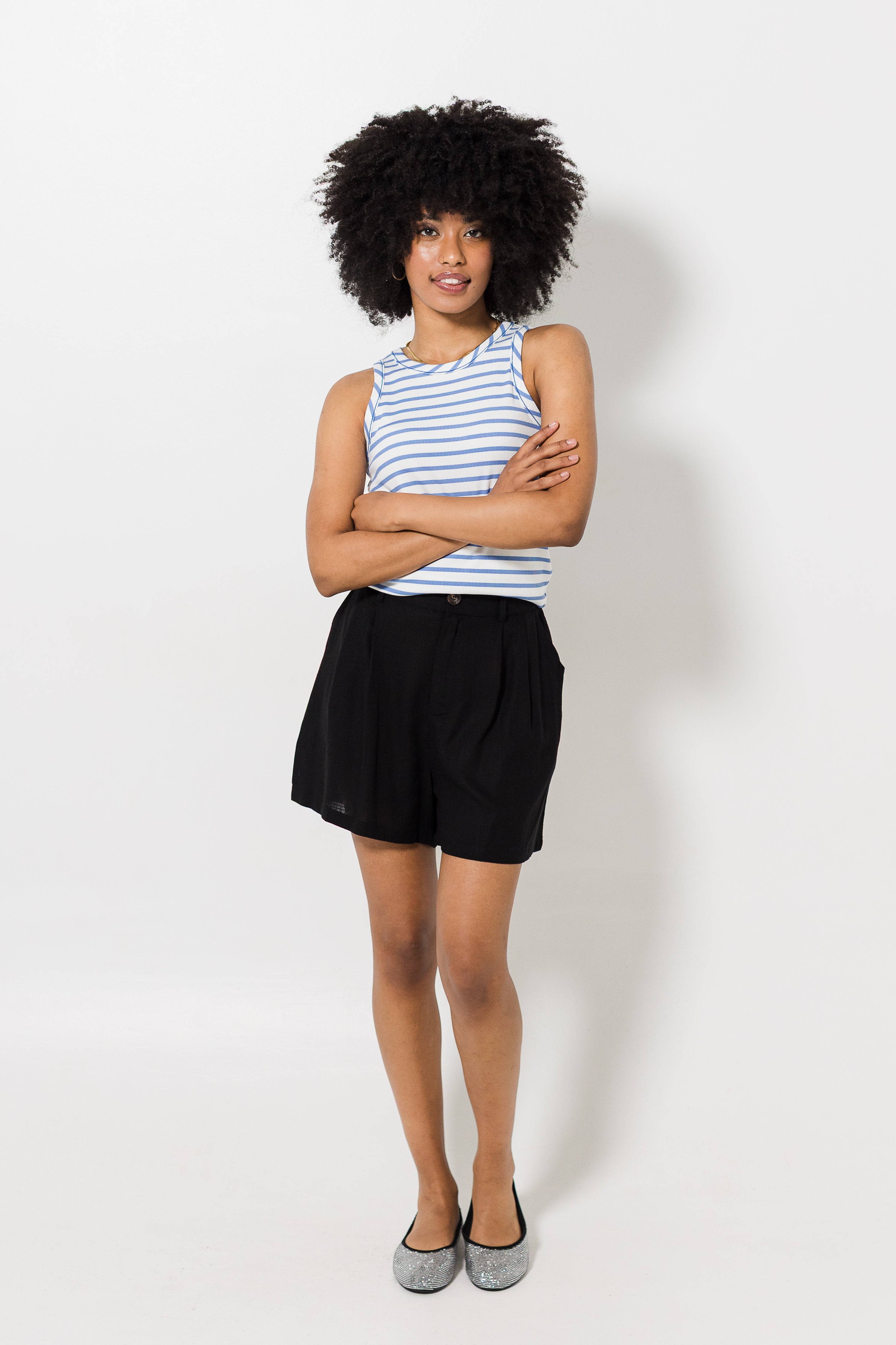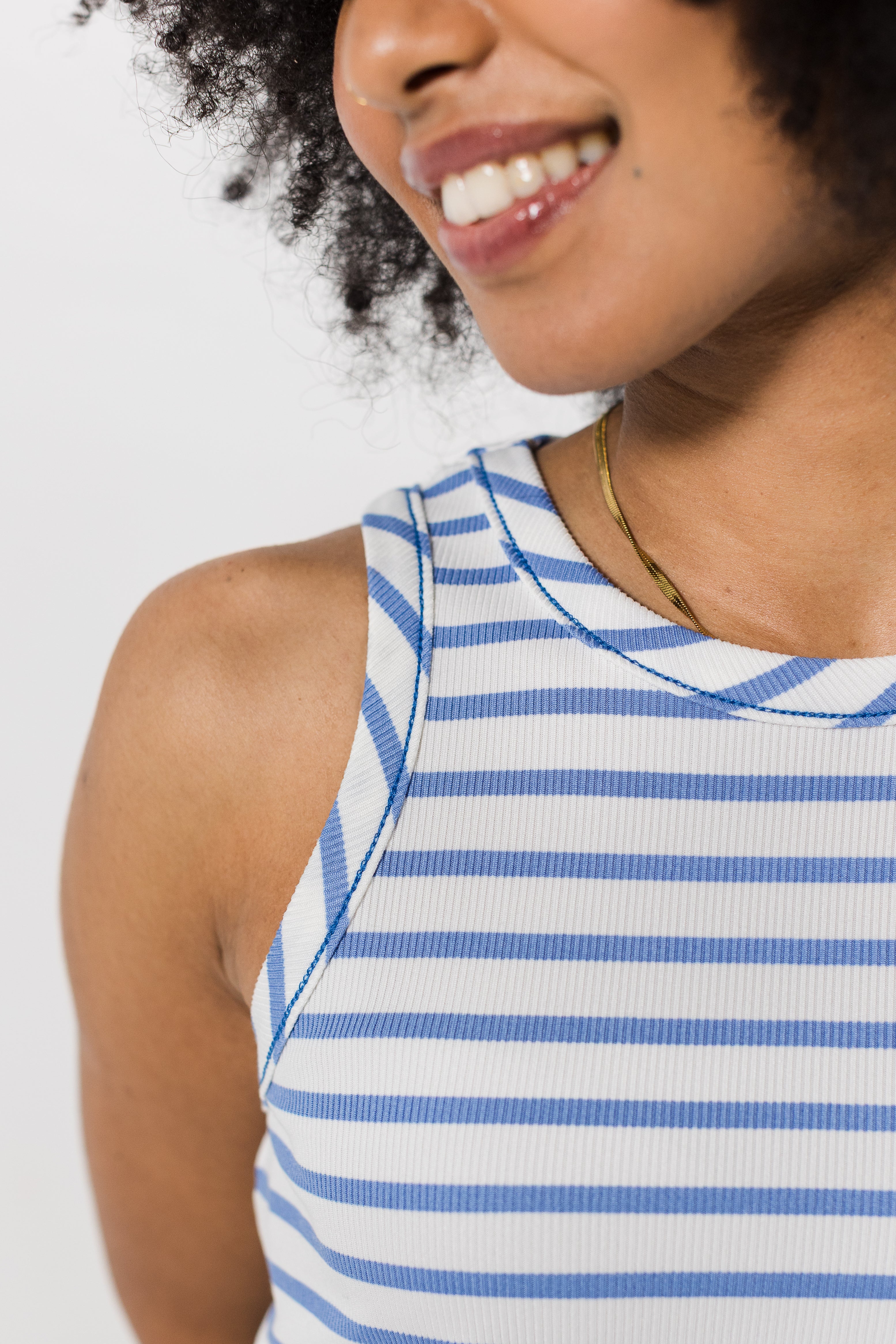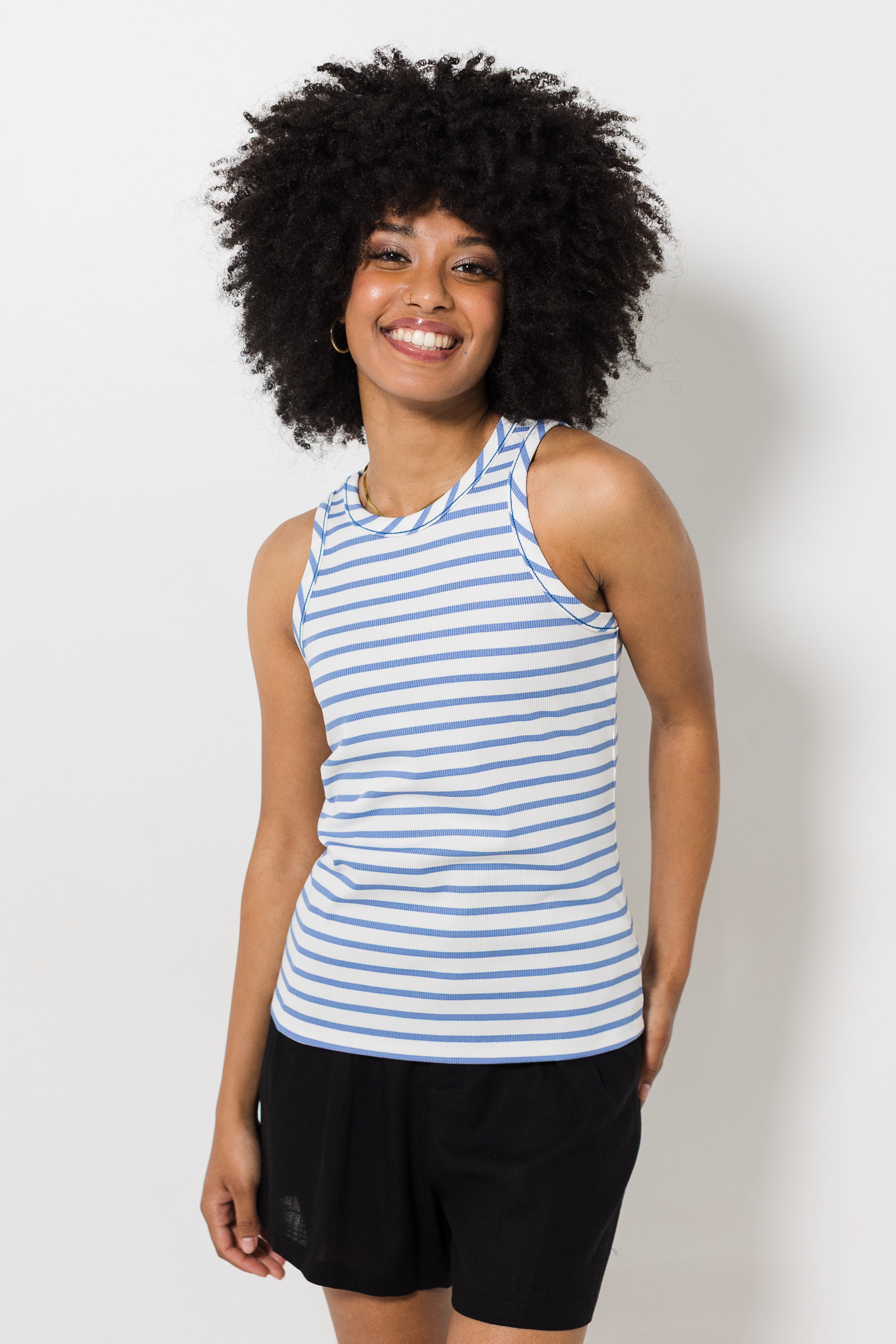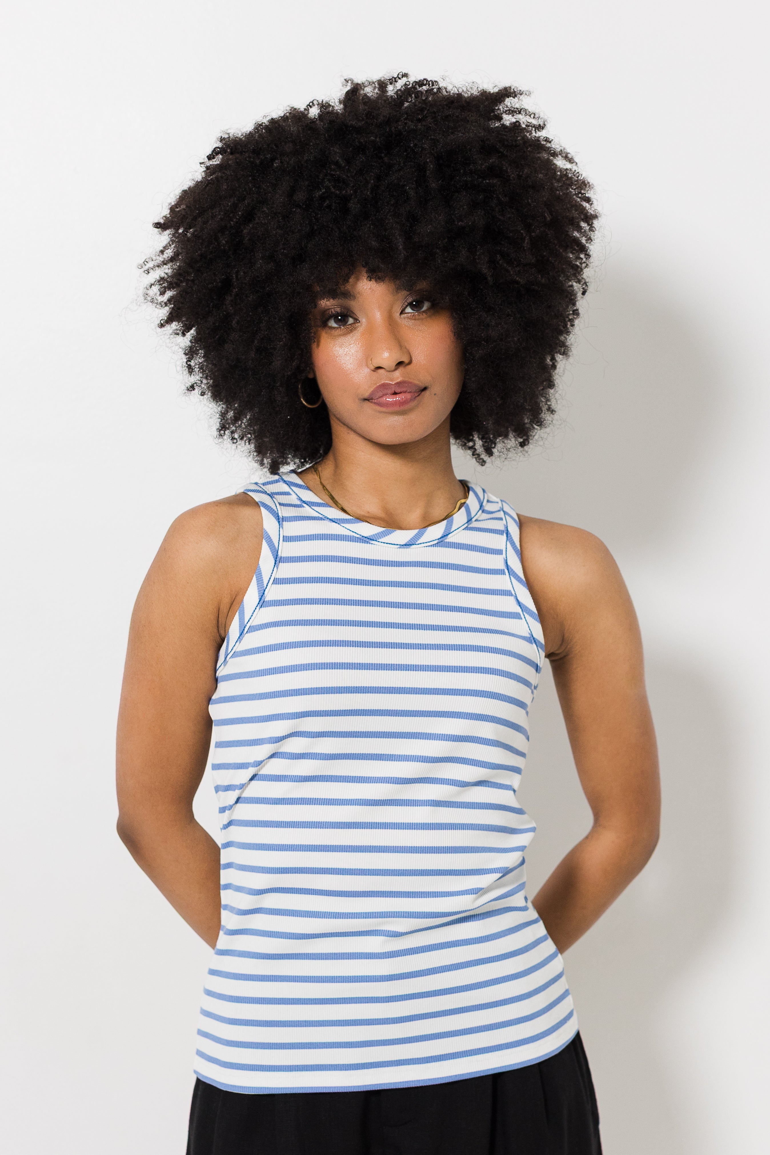 Round neck racerback vest Binding on neck and armholes Higher neckline for new-season sophistication Slim fit style |