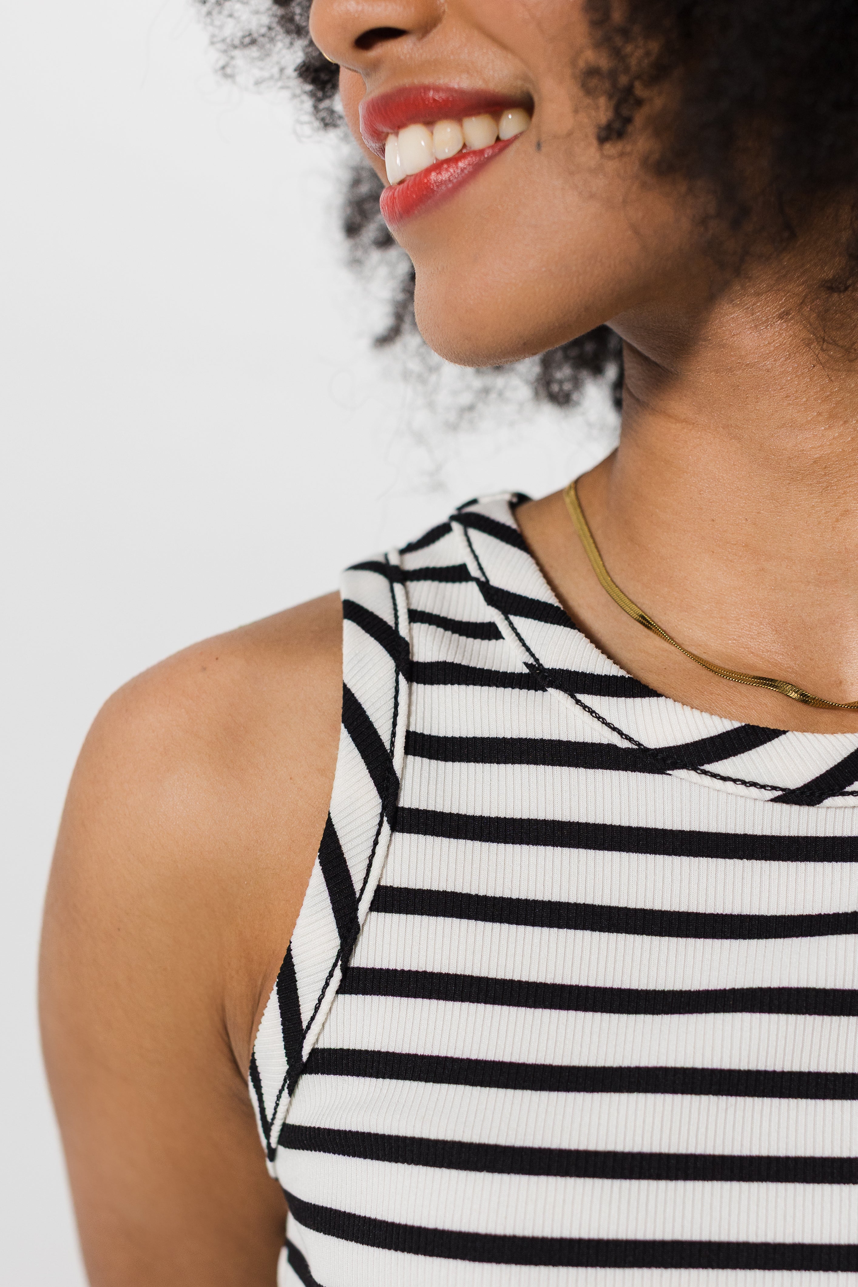Round neck racerback vest Binding on neck and armholes Higher neckline for new-season sophistication Slim fit style |