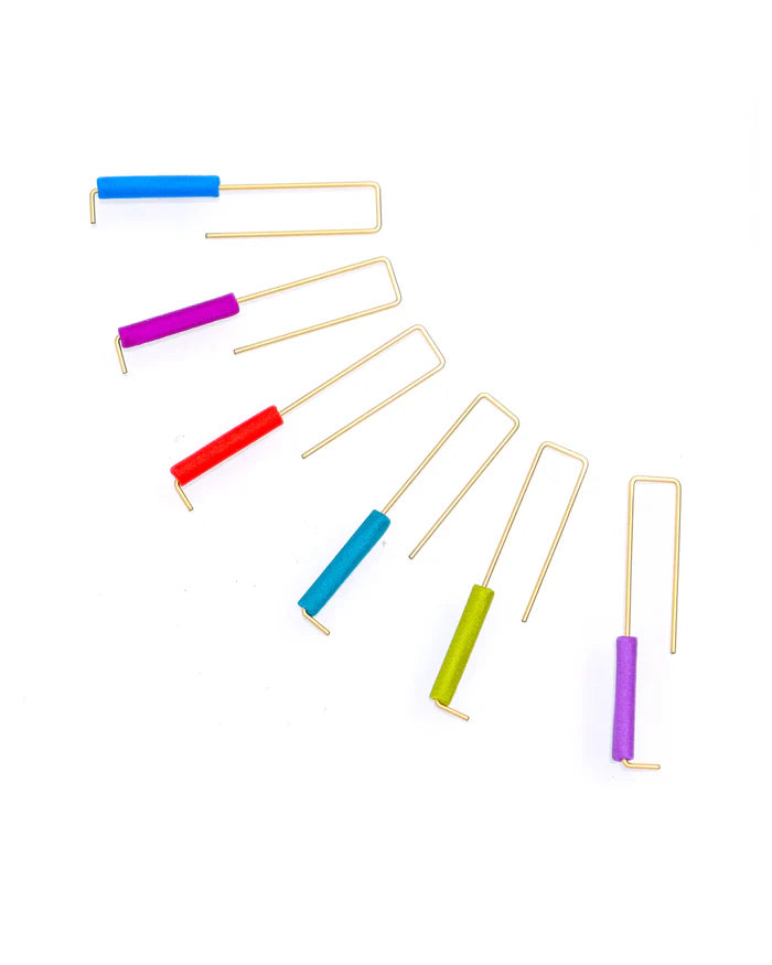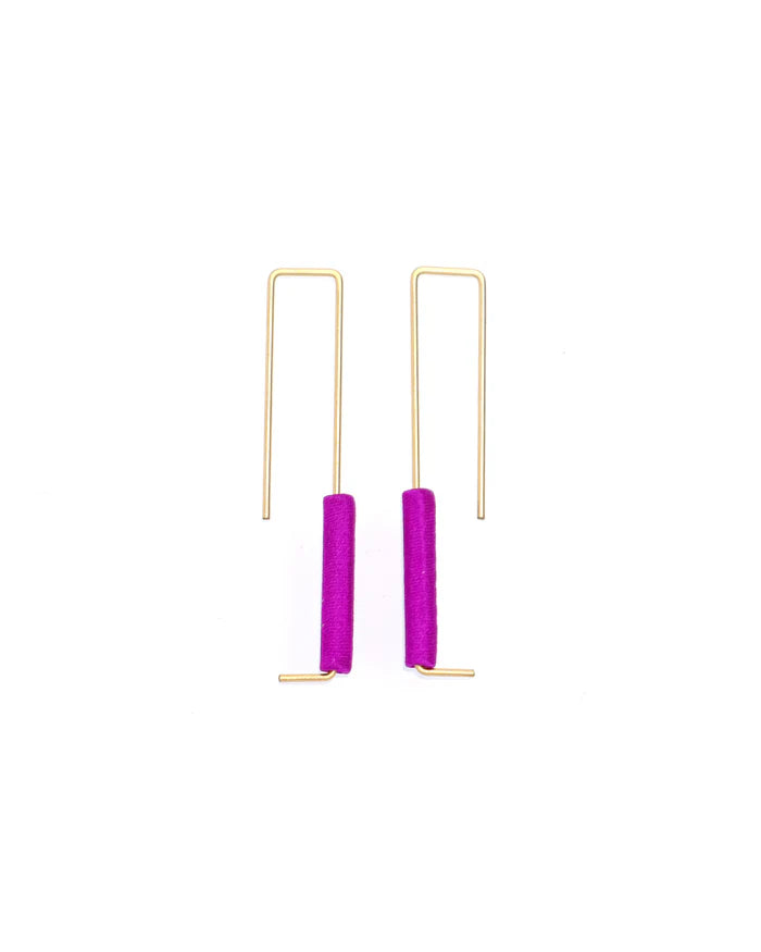 Minimalist's dream earring. A tubular silk component set in a rectangular design |