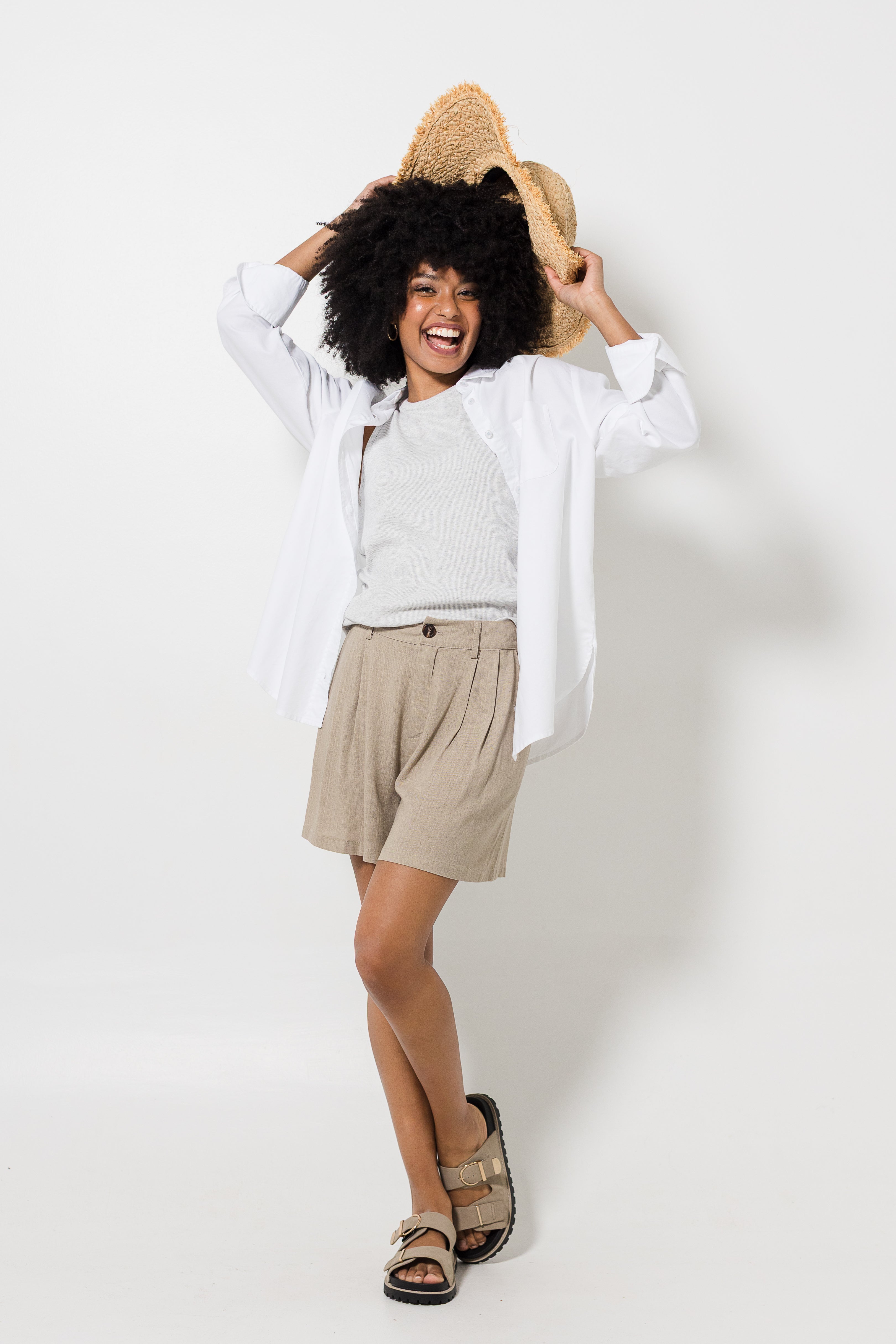 Relaxed tailored short silhouette Front pleat detail for tailored silhouette Front zip and fly closure with button finish Side pockets Elasticated back for comfort and ease of fit * A classic tailored short |