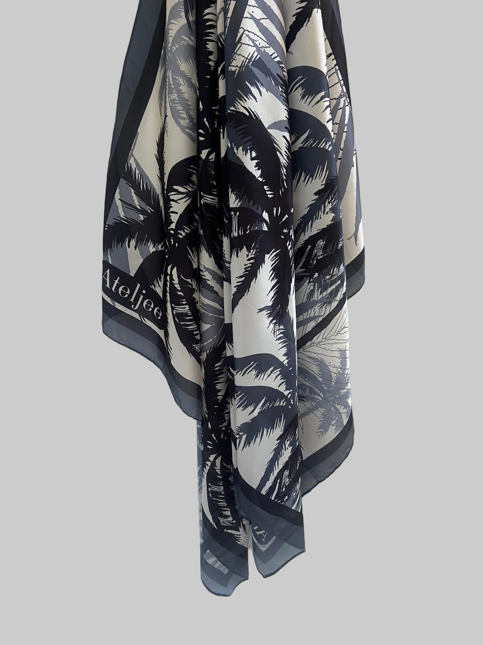Soft touch silky wrap Large Rectangle Shape (190x90cm) Exclusive original Ateljee design with mixed retro print detail Large enough to wear in a few different ways: