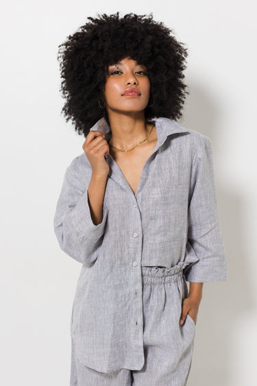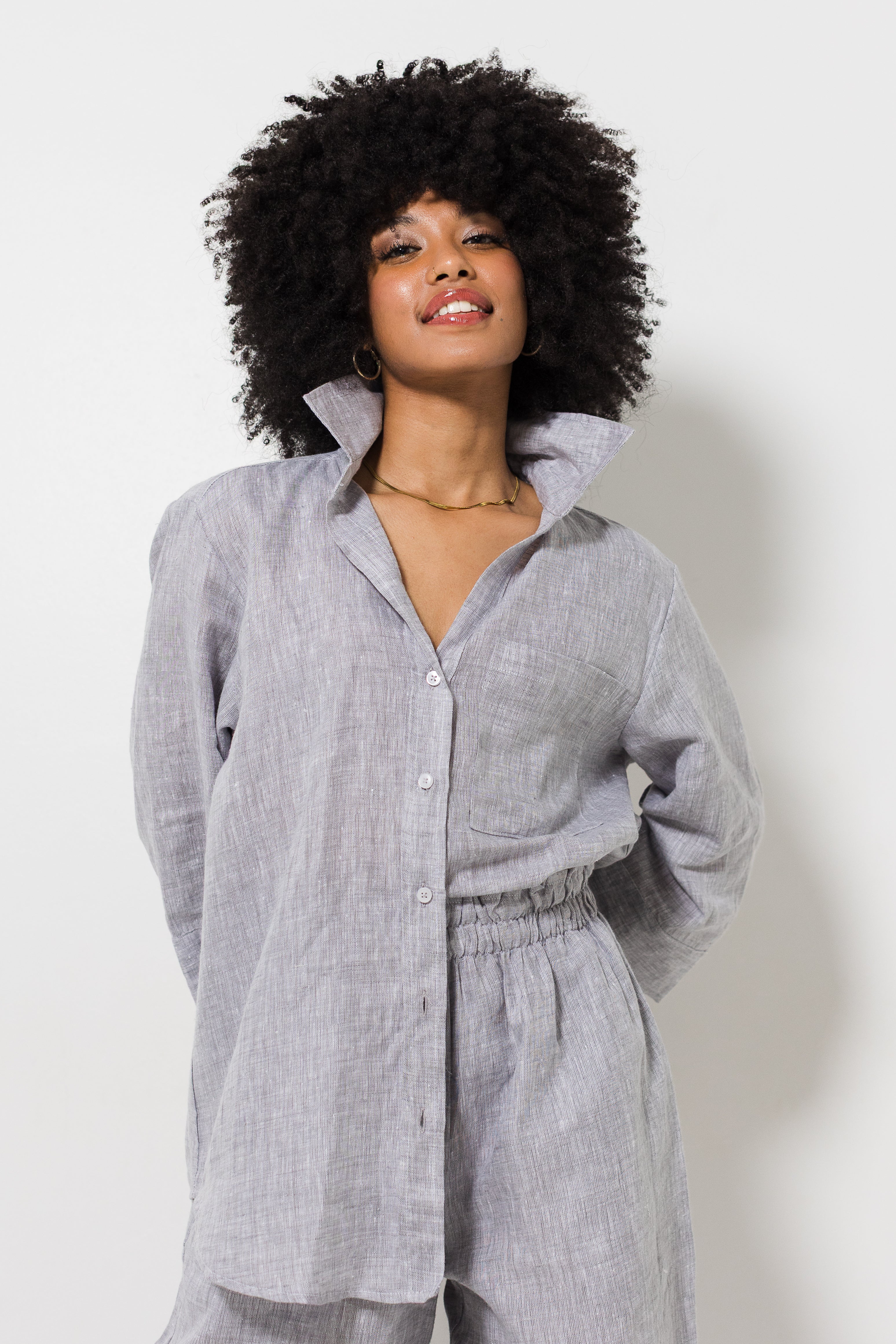 A classic shirt style in a timeless linen 3/4 sleeve with cuff detail on sleeve Classic collar Rounded hem, classic cut A best-selling silhouette Pairs well with the Sanctuary elasticated trouser |