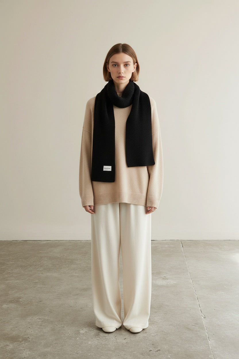 Ribbed knit Scarf Soft and luxurious to the touch Drapes easily, holds shape well and is a reliable everyday layering pieces *The dimensions have been carefully engineered to strike the right balance - not overly bulky, yet substantial enough to wrap generously, tuck into a jacket, or sit neatly under a coat without adding weight. |
