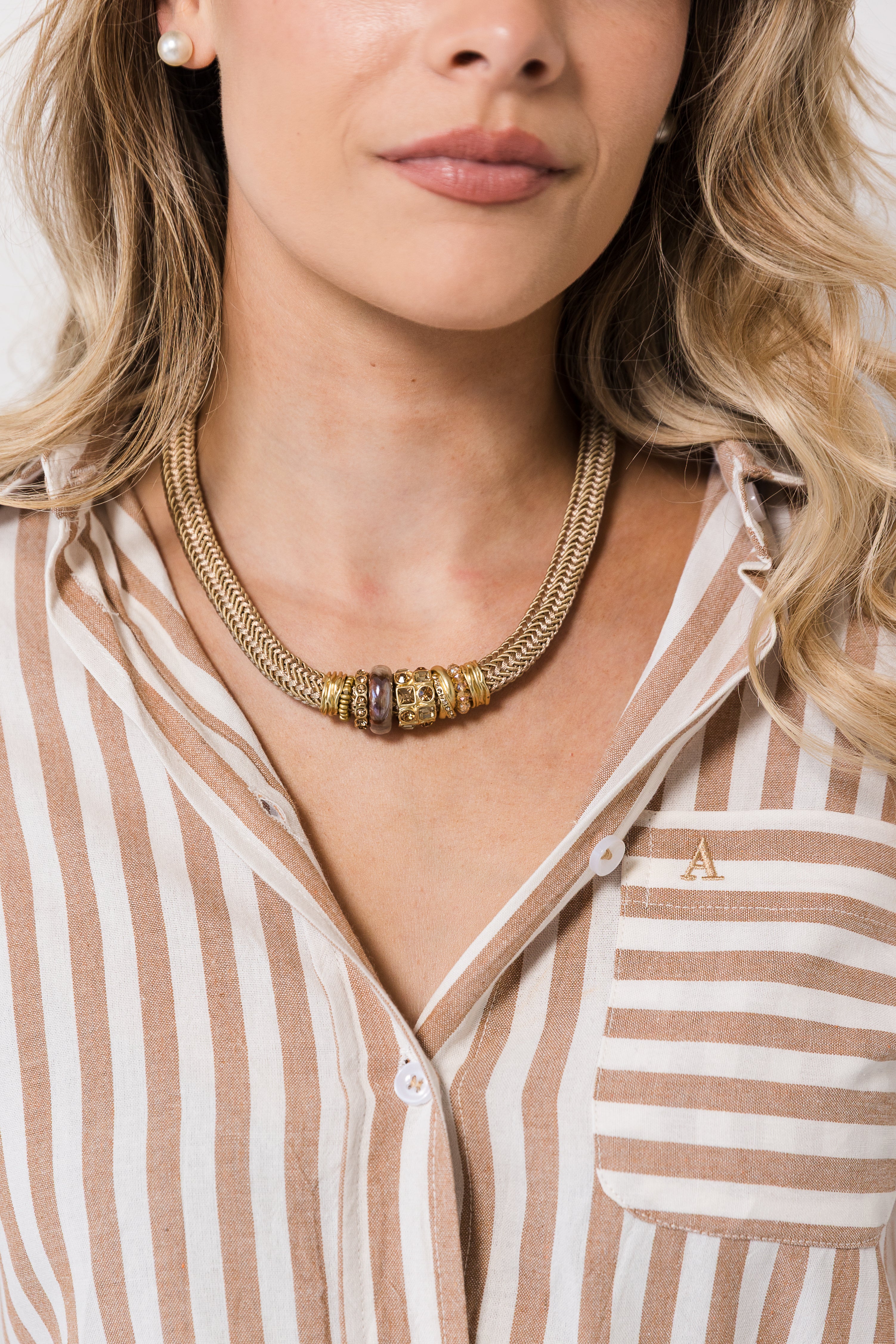 Hypo-allergenic gold-plated findings and woven corded rope |